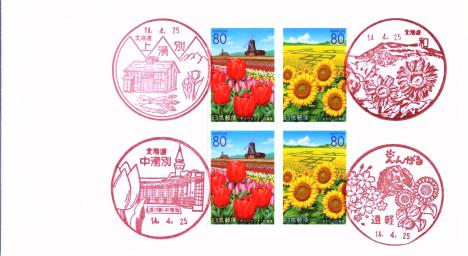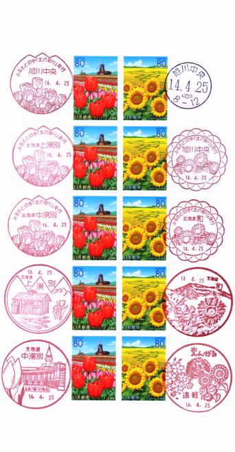 風景印(上湧別局ほか6局)、適正小型印(2種類・5局)、旭川中央局和文ハト印 |