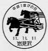 ※ 1999.11.11は別図案の「平成1並びの日」小型印(使用期間:1999.1.1〜11.11、図案:丸加高原、グライダーに乗ったうさぎ)も使用していますので、郵頼するときは「11.11から使用開始の小型印」と付記してください。