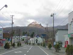 10:05 大滝村の方面(壮瞥駅前の北側。国道453号線)から約300m先のセイコーマートで筋子おにぎりを買う。途中、昭和新山から水蒸気が上がっていました。風景印にも描かれていますけど、ほんとにずっと上がっています。