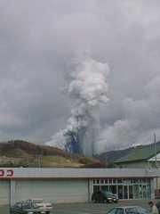 最後の写真にある道路は、通行止めの国道230号線です(虻田町入江)。この先の国道230号線付近にある噴火口から噴火したものと思われます。ほんとに、当分は有珠山の活動、続きそうですね。早く活動が沈静化することをお祈りします。