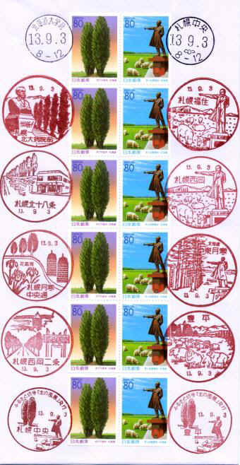いよいよ待ちに待った、ふるさと切手北海道版「北の風景」(ポプラ並木、羊ヶ丘展望台)の発売日。ところが、当初の予定では遅くとも8時半には家を出て、自転車で豊平局に行く予定が、押印用カバーの印刷などの準備に手間取り、家を出たのが8時53分。そんなに時間の余裕がないというのに、既に20分以上のロス(^^;。