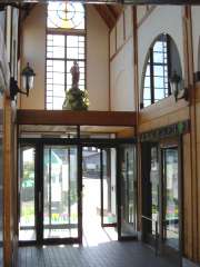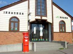| 7:39 | 渡島当別駅で降りる(350円)。渡島当別駅は渡島当別郵便局(無集配特定局)と併設しているので、駅の入口=郵便局の入口ということで、入口上には「渡島当別郵便局」と「渡島当別駅」が併記されています。そして駅&郵便局入口前に丸形ポストがあり、デジカメでパチリ。なお、郵便局に入るためには、駅舎に入る必要があるので、実質「駅内郵便局」ですよね(^^;。 |