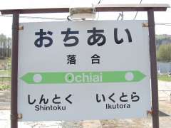 | 10:07 | 落合駅で降りる。(厚別駅から181.5km)駅舎、駅名標をデジカメ撮影したあと、折りたたみ自転車を組み立てて、郵便局廻りがいよいよスタート。 |