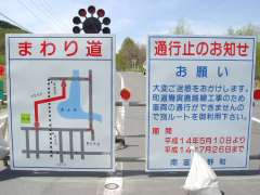 | 11:32 | 東鹿越郵便局に向けて自転車をこいでいき、東鹿越駅に抜ける町道を通ろうとしたら、町道幾寅東鹿越線が5月10日から7月26日まで道路工事のため通行止…5月10日って、今日!迂回路を通っているようだと予定通りの局廻りは不可能。大ピンチ!でも、今日から工事開始なら、まだそんな大それた工事もしてないだろうし、多少なら自転車を押して通行もできるだろう…全く行けないこともないだろうと思い、通行止区間を強行突破することを決意。通行止のところで作業を休んでいた2人の男性(見張り?)がいたので、「自転車で通行はできますか?」と聞いたら、「本当はダメだけど、見なかったことにする」と、言って見逃してくれ、なんとか通行できました(^^)。途中、アスファルト舗装が片側、剥がして砂利が敷いてある部分はあったものの、通行した時間帯で工事をしていた区間はどこもなく、そのまま通行止の終点部分、東鹿越駅前まで何事もなく自転車を走らせて通行することができました。ホッ。しかし、走行途中、「熊出没注意」という看板があったりして、ちょっとビビりました(^^;;;。 |