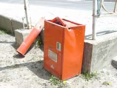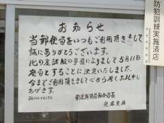 | 11:47 | 東鹿越簡易郵便局に到着。局舎の写真をデジカメ撮影する。この局舎は以前、鹿越郵便局だったものです(昭和63年3月31日廃止。簡易局は昭和63年4月1日設置)。で、局前のポストは車が衝突したためか、根元からポッキリ折れて、箱部分は逆さまに置かれていて、使用不能状態(^^;。 |