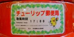 | 15:21 | スタンプを押し終わり、風景印と小型印を押そうとしたら、小型印しかないとのこと。2種類の消印用に2枚のチューリップ切手を貼ったカバーも用意していたのですが、時間もないので2枚の切手に小型印を押すことに。ちゃんと現物を確認してから切手を貼るんだった(^^;(または、あらかじめ郵便局に風景印を持ってきてもらうよう「予約」する手もありますね(でも、そこまでは普通、なかなかできませんね(^^;)。 |