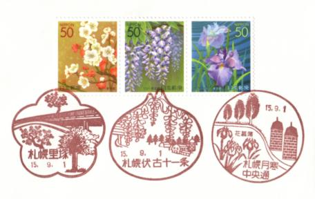 「東京の四季の花・木IV」風景印押印記・札幌編(2003年9月1日(月)) |