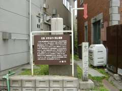 | 9:05 | 小樽堺町局での風景印押印が終わり、局舎となりにあり、風景印に描かれている「史蹟 オタルナイ運上屋跡」を撮影する。風景印では小樽運河のガス灯より大きく描かれていますが、実際の史蹟はわずか1mほどしかない小さなものでした(^^;。よって、見過ごす可能性大ということで、史蹟の解説看板の横に赤い矢印「↓」があったりします(^^;。 |