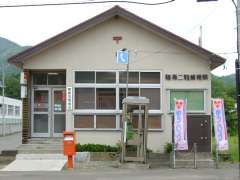 | 9:23 | 二股駅から約100m歩き、胆振二股局到着。局前には今日限りで業務終了の看板がありました。また、昔の局舎らしく、三角屋根の局舎の上に「〒」マークが入っていました。 |