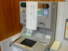 | 9:25 | 胆振二股局に入る。ゆうちょATMは昨日をもって業務終了ということで、「使用中止」となっていました(あとで業者が来て、完全にATMの電源を落として、「使用できません 窓口でお願いいたします」の張り紙が貼られました)。 |