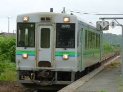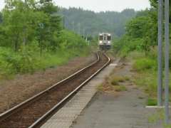 | 13:52 | 倶知安で5分停車。その間に途中下車して、駅のキヨスクでパン3つと缶コーヒーを買う。車内に戻り、すぐにパンを食べ、やっと空腹解消(^^;。 |
