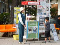 | 9:35 | 臨時郵便局での記念押印が終わり、競馬場の来場記念として第1レースの単勝馬券購入することに(^^;。面白い馬名はないかな…と、思っていたら「サンクス」号という馬があったので、これに決定。8頭立ての6番人気ととても1着になりそうにはなかったのですけど(^^;。レースは9:55発走なので、生では見ることができず、競馬場を後にする(レース結果は5着でした(^^;)。 |