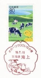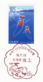 滝上局風景印・小型印押印記(2004年7月19日(月・祝)) |