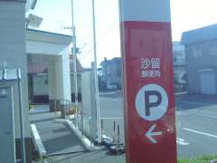 | 7:17 | これまたバスの窓越しにて沙留(さるる)バス停前にある沙留局局舎(看板)を撮影する。 |