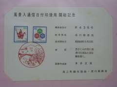 | 10:08 | 道の駅の2階では滝上町の観光資料の展示があり、各種ポスターや新聞等の記事とともに、郵趣関係品などもありました。ふるさと切手「芝ざくら」はもちろん、滝上局の新旧風景印、濁川局風景印の使用開始初日印のタトウ、ふるさとワンポイントメール(ふるさと絵はがき、1995年(平成7年)1月10日発売、1枚は発売初日の小型印押印)、テレホンカードやふみカードの展示がありました。これだけ多くの種類について展示しているのは珍しいですね。 |