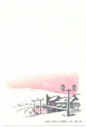 | 平成7年用 | 1994/11/01 | 朝明けの小樽運河 | 金子誠治(版画家) | 728万枚 | 50+3 | 55 | 折鶴と松文様 |