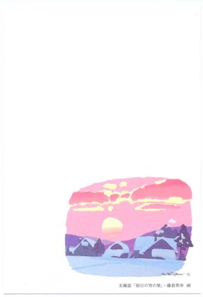 | 平成16年用 | 2003/11/10 | 納沙布岬の初日の出 | 佐藤正人(イラストレーター) | 843.9万枚 | 50+3 | 55 | 羽子板 |