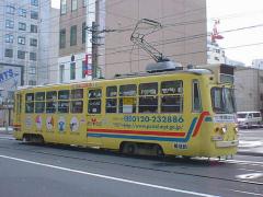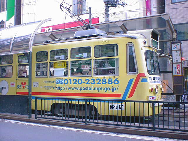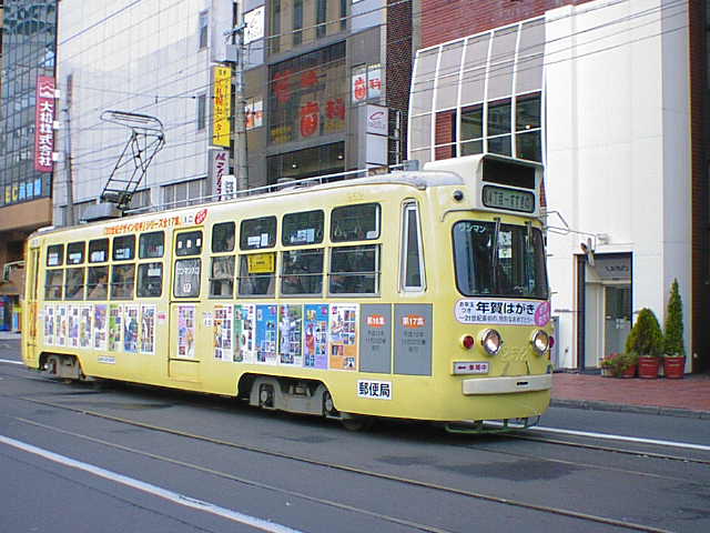 札幌市交通局で営業している路面電車(札幌市電)で、北海道郵政局の広告車両が登場しています。