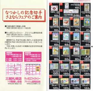 | 札幌中央局ほか「なつかしの記念切手さよならフェア」開催 | 2001.2.12 |