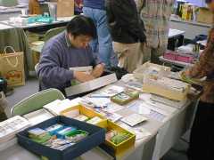 私は途中、ノートパソコンとPHSを取り出し、「切手のガレージセール」ホームページに現地レポートとして、掲示板に書き込みをしてしまいました(^^;。 (2001.3.6更新) |