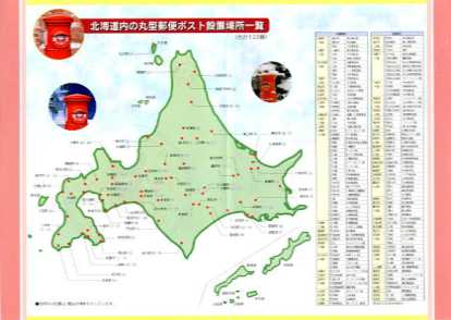 札幌中央郵便局のロビーに「北海道の丸型郵便郵便ポスト」のパンフレットが置いてありました。見開きA4判(2つ折り)で、内側に北海道内に設置されている丸型郵便ポスト設置箇所一覧(133個)が掲載されています。