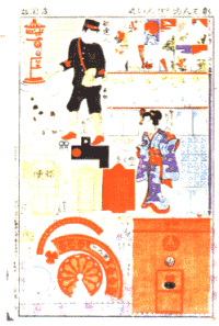 逓信総合博物館ていぱーく「俵谷式郵便ポスト」(3月15日分の再掲) また、「立版古」の絵を描いた中村洗石は、1990(平成2)年12月14日発売の電話創業100年記念切手に描かれた「女子電話使用の図」の絵も描いています。(2001.3.23更新) |