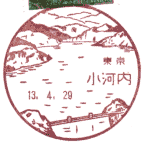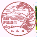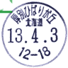 | 13:30 | 東室蘭駅東口から100m歩き、東室蘭局に行く。インク浸透式和文印は窓口において使用中。そのインク浸透式印と金属の和文印の両方を葉書に記念押印する。 |