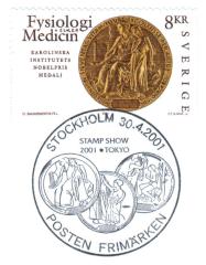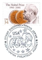 また、外国郵政の記念押印サービスもスウェーデンとアメリカの2種類で使われていたので、ノーベル賞100年切手に押印してもらいました。