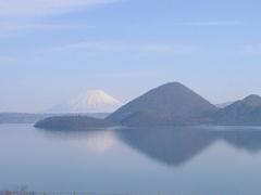 | 7:30 | やっと起床。参加者の一部は昭和新山までの往復約9kmの早朝ランを行いましたが、私はひざの痛みもあって、参加自粛(^^;。 新聞にて昨日の巨人−横浜戦が清原選手のサヨナラ3ランHRで決着したことを知る。今の野球だと接戦になれば、試合がTV放送の終わる21時20分頃になっても終わらないことが多いですよね。試合時間を短縮するなら、今の9回を8回とか7回に短縮しないとダメでしょうね。 天気がものすごく良く、洞爺湖の中に浮かぶ中島と中島の左手後方に見える羊蹄山(蝦夷富士)がきれいに見えました。すばらしいですね。洞爺温泉局の風景印に描かれている光景どおりです。 |