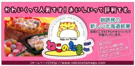 5/14(月)に発売された釧路に会社のある(有)松竹屋製菓のエコーを道東にいる友人に買って送ってもらい、今日受け取りました。エコーは釧路駅や新千歳空港などで売られている銘菓「ねこのたまご」です。ホームページも非常に楽しいです。しかし、エコーの広告文で「母の日においしい贈り物。「ねこのたまご」をぜひ、どうぞ。」…母の日の翌日に発売というタイミングは悪すぎる…。