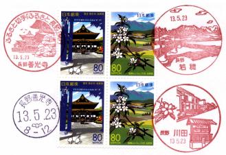 21:40頃、ふと小型印郵頼をまだしていないことに気づきました。旭川市内の特定局9局で5月26日(土)から使用開始の「旭川ラベンダーヒルズ内臨時郵便局」の押印依頼がまだでした。すぐにパソコンのWordで依頼文書のひな形に使用開始日と件名を書き加えて(いつもは局名も入れているけど、今回は省略(^^;)、差出用封筒(あて名は昨年も今年使用と同じ9局で使用のため、あて先は入力済のを使う)、返信用封筒も印刷(封筒に直接)し、白カードに50円切手を貼り、返信用封筒に80円切手を貼ったところで、時刻は21:58。JR厚別駅から発車の札幌方面行き列車が22:02なので、切手が入ったフォルダーと封筒、依頼文書などをバックに入れ、急いで厚別駅から札幌方面行き列車に乗り、札幌駅到着は22:13。そのあと、急いで札幌中央局に向かい、郵頼発送作業。差し出し封筒に封をするときは、手持ちのテープのりを使えば、かなりの時間短縮になります。 私書箱には、東京の友人Yさんが、長野に行って、「ふるさと長野」切手に善光寺局の小型印、和文ハト印、岩穂局と川田局の風景印を押して、私宛に差し出してくれました。この場を借りて、ありがとうございました。