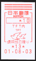 | 15:15 | ビックサイト近くにあるTFT(東京ファッションタウンビル)にある、TET内郵便局に行って、和文印、欧文印の記念押印とメータースタンプを入手する。外はそれほど暑くなく、真夏日ゼロの札幌から来ている私としては、ちょっとした暑さを求めてきたのに(暑すぎるのはパス(^^;)拍子抜け。 |