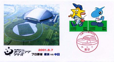 この日は札幌ドームでプロ野球セ・リーグ、横浜ベイスターズvs中日ドラゴンズの試合が行われ、また試合観戦しました。この試合開催記念カバーを作成。昼休みに豊平局に行って、「札幌ドーム臨時郵便局」小型印を押してきました。