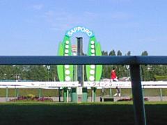 この日、札幌競馬場に行って、「北国の風景 札幌競馬場臨時郵便局」小型印を押しに行きました。 暑中見舞ではなく、残暑見舞の葉書をかもめーる北海道版「ポプラ並木と夏の星空」を使って差し出しました。 8時半、競馬観戦をゆったりと見たいので、A指定席(1,600円)の禁煙席を購入。しかし、先着2千名にもらえるジョッキの顔写真入りマグカップは、開門が8時50分、私が入場した9時03分にはのため、とっくにマグカップ配布は終了してました(^^;マグカッププレゼントは、札幌開催の毎週日曜日、先着2千名なので、指定席を確保し、なおかつマグカップをもらうためには朝7時くらいに並ばないダメですね(来週の札幌記念開催日は、朝5時くらいかな(^^;)のようです。 小型印にはポプラ並木が描かれていますが、競馬場周辺はたくさんのポプラがあります。で、入場してすぐに入口近くにある臨時郵便局に行って、第1レース発走開始が9時50分ということで、余裕を持って押印…と、2枚押したところ、日付が「13.8.11」と昨日になっていました。で、すぐ日付を取り替えてくれると思いきや、局長さんが「局に戻って日付を取り替えてくる」…私は午後4時までいるから、時間の余裕があるので問題なかったのですが…。 第1レースは見たものの、第1レース終了後、第2レース(発走10:15)、第3レース(発走10:45)は押印中で、レースを生で見ることはできず(さすがに「レースを見ていますので、また押印に戻ります」なんてことは言えなかった(^^;)。 10:50に押印終了。1時間近くいたので、「日本の名馬」絵入り葉書(東京、信越で1998.3.16発売。近畿で1998.5.1発売)1セット(5枚組・350円)を買いました。この絵葉書はオグリキャップ、トウカイテイオー、ビワハヤヒデ、ナリタブライアン、マヤノトップガンとG1競走を3勝以上している輝かしい成績を収めているサラブレッドです。もし、今、出すとしたら…グラスワンダー、エルコンドルパサー、スペシャルウィーク、メジロドーベル、そして現役馬ですがテイエムオペラオー、ってところでしょうか?なお、この絵入り葉書、北海道では1998年3月16日発売「サラブレッドin北海道」として発行しており、たとうのタイトルが異なるものの、中身の葉書は全く同じですけど、「日本の名馬」は東京版などで出されたもので、北海道では本来、売られていないものです。「サラブレッドin北海道」は、北海道郵政局では既に発売2年経過したものは処分対象ということで、もう在庫はないはずですが、北海道外から取り寄せるというのも、それってあり?って感じですね。 メインレース、第49回クイーンステークス(G3・3歳以上、牝馬限定)が行われました。結果は単勝1番人気の3番ヤマカツスズランが先行逃げきりで2着馬に3馬身差をつけての快勝。 でも、よーく考えれば、札幌−市の花はスズラン、さらにもって芝コースのゴール板にはスズランが描かれているではありませんか(ダートコースのゴール板は時計台)。まさしく、ヤマカツスズランに勝ってください!と言わんばかりの設定でした。で、私がそのことに気づいたのはレースが終わったあと…馬券は買ってませんでした(^^;。