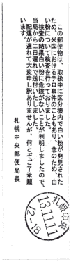 ●白い粉による遅延郵便が到着