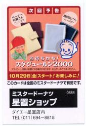 で、店名、店番号、所在地情報、電話番号が印刷されていて、「ラッキーカードを集めると面白いな」と思い、早速、いろんなショップでドーナツを買ってはラッキーカードをもらい、集めてました。11月下旬(だったと思う)、東京・浅草で<JAPEX’94>(全国切手展)開催のときに東京へ行った際、切手展終了後にミスタードーナツ東武浅草ショップ(0501)に行き、そこでラッキーカードを見せたところ、同じ札幌の志賀格さん(現在は江別在住)が手持ちのモバイルパソコンに打ち込み、データベースをつくって、NIFTYのコレクターズフォーラムに情報提供して、ラッキーカード収集が広まった…という経緯があります。なお、志賀格さんはいろんなコレクションの収集家ページのリンク集サイトをつくっています。 Collectors Web(収集家のページ)/志賀格さん 星置のダイエーは、私がミスドのラッキーカード収集のきっかけなので、そのダイエーが無くなるというのは、やはり寂しいですね。で、ダイエー閉鎖となった場合、ミスドの星置ショップがそのまま残るのかどうかが注目です。ミスド星置ショップはダイエーの中ではなく、駅前広場に面した外からショップに入れるので、ダイエー閉店しても営業することは可能ですので、そのまま営業するのでは…と、思いますけど、今月中には星置に行って、様子を見てくることにします。 |