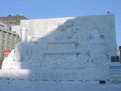 タヌキといえば、札幌南二条局の風景印に「タヌキ」が入ってます。そして、札幌南二条局は「さっぽろ雪まつり」小型印使用局でもあるので、「適正使用局」ですね(^^)。なお、私がちょっとだけ手がけた雪像は、NHKで放送されることになりそうですので、放送予定をお知らせします。ほんとに、雪像が完成して嬉しいですよね。多くの方に素敵な雪像を生で見てもらいたいですね(^^)。(2002.2.3提供) |