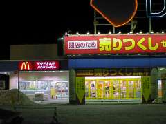 ●ミスド、星置ショップは既に閉店… 手稲郵便局まで行ったついでに、2月24日(日)限りで閉店となるダイエー星置店入口にあるミスタードーナツの様子を確認しようと思ったら、ミスドでなくマクドナルドに変わってました(写真下)。どうやらミスドの星置ショップは昨年中に閉店していたようですね…。ミスドのラッキーカードを最初にGETしたショップだったのですが、残念ですね。(2002.2.7提供)
