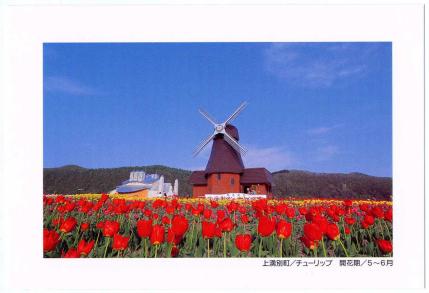 ●上湧別町のチューリップ、5年前の絵入り葉書でも登場 ふるさと切手北海道版「北の彩り」発行まで3週間を切り、そろそろ初日カバー用のカシェ作成をしようと思い、どういう題材を使おうか…と、未整理の部屋を捜索したところ、5年前(1997年5月20日)に発売の「花回遊」絵入り葉書6種セットの1種で上湧別町のチューリップがありました。この葉書を活用してカバーをつくりたいと思ってます(^^;。でも、この葉書はマキシマムカードとして使ってもいいですよね。緊急で単品にて追加発売してくれないかなぁ(^^;;;。(2002.4.7提供)
