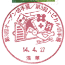 この日、会場で使用されている記念の小型印は3種類です。メインは「箱根★サン=テグジュペリ 星の王子さまミュージアム」の協賛を受けて、ミュージアムのショップが会場でも開設ということで、ミュージアムのロゴマークがそのままスタンプショウの小型印に登場です。 |