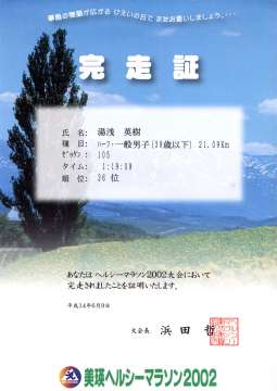 そして、ゴール地点までなんとか足がもってくれて、1時間19分09秒でゴール。白金温泉から標高400mくらい駆け降りるコースとはいえ、1時間20分を切るタイムを出したのは初めてです。私にとっての「ひとつの目標」を達成することができました。ほんとに嬉しい瞬間でした(^^)。