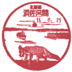| 12:08 | 68km地点、浜佐呂間市街に到着。実は、ここである「作戦」を敢行。それは、浜佐呂間郵便局で風景印を記念押印すること。ただ、ゆうゆう窓口が12時30分までやっていたかどうか、非常に不安となってしまった(北海道の集配局で、日曜のゆうゆう窓口営業終了時刻はたいていは12時30分までですが、局によっては12時以前のところもある)のですが、局に寄ってみると12時30分までだったので、ホッとする。で、ウエストポーチに用意していた葉書に風景印の押印をお願いすると、持ってきたスタンプ台が普通の赤スタンプ。実はこの日、ウルトラマラソンは100kmだけでなく、50kmの部門もあり、50km地点のスタート地点は佐呂間市街。で、そこに臨時郵便局を開設し、風景印を持っていったとのことですが、風景印用のトビ色スタンプ台は局に1つしかなく、その1つをその臨時郵便局に持っていったため、私が行った時点で局には風景印用スタンプ台がなく、赤スタンプ台を用意してきた…とのこと。やむを得ず、赤スタンプで風景印を押す(^^;。でも、佐呂間市街の集配エリアは佐呂間郵便局。もし、佐呂間郵便局も臨時郵便局を開設しているなら、風景印用のスタンプ台は佐呂間局のを用意してもらい、浜佐呂間局にはスタンプ台を残してほしかったですね(我がままな話ですね(^^;)。または、あらかじめ押印しに行くことを「予告」しておけばよかったかな(^^;。本当なら、ちゃんと6月30日付で「郵頼」(ちゃんと、サロマ湖100kmウルトラマラソン参加で、マラソン当日の日付の風景印を記念にほしいため、と理由をつけて依頼する)すれば、郵便局に寄る「ロスタイム」は生じないのですが(^^;;;。さすがに、風景印を清掃する余裕は無し(^^;。結果的に約4分のロスタイム(^^;。 なお、私の手持ちにある浜佐呂間郵便局の風景印には結構バラエティがあるので、紹介いたします(平成の日付のものはすべて私が直接局に行って押印したものです)。 |