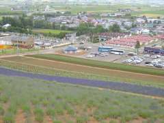 | 11:25 | 駅から1km走り、なかふらの町営ラベンダー園に到着。ここは冬にはスキー場ですが、夏はラベンダー園と様変わりします。そして、観光リフトに乗る。中富良野駅にある割引券を使い、通常300円のところ250円。リフトは333mの長さで、乗車時間は山麓→山頂で4分ちょっと。山頂で看板を含めて斜面に植えられているラベンダー、そして中富良野の町並みをデジカメ撮影する。 |