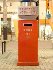 | 19:25 | アーケード街の東側には私設ポスト「郵便は世界を結ぶメロディーポスト」(「NCおびひろ」広告入)が設置されていました。「地球儀」に描かれている国で、ロシアのところが「ソビエト連邦」になってました。だいぶ前の状態の「地球儀」ですね(^^;。 |