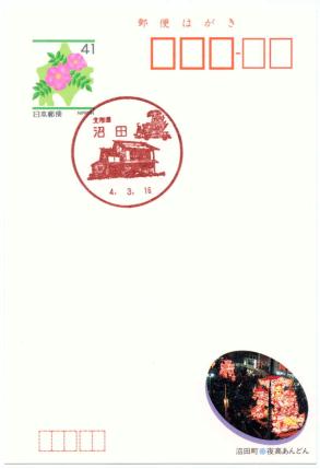 沼田町化石館ホームページ 北竜局廃止により、ほたるの風景印も「消滅」。沼田町内にある郵便局は沼田局と北竜簡易局のみ。ですから、ほたるの風景印を「復活」させるためには沼田局風景印の図案改正しかないんですよね。今ならやっぱり、丸形ポスト入りの「明日萌駅」と「ほたる」ですね。 |