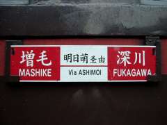 | 9:10 | 深川駅から増毛行・SLすずらん号に乗る。車内ではSL車内にあるスタンプ押印(2種類)、SLすずらん号オリジナルの絵葉書購入、そして車掌さんが熱心に売り込んでいたオレカのうち、SLすずらん号の1種類だけを買う。オレカを買ったところ、過去の乗車証明書などをもらう。そうこうしているうちにもうすぐ恵比島駅到着。結局、買った指定席の座席は一度も座らずじまい(^^;。3号車に設置のスタンプを押していたら、スタンプの近くに留萌本線沿線市町村のパンフレットなどが置いてあり、沼田町のパンフレットをもらう。そして、パンフレットの置かれているところの上には今日と明日に沼田で行われる「夜高あんどん」のあんどん模型が展示されていました。 |