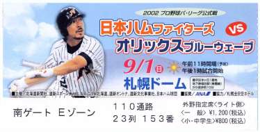 私は13時20分に札幌ドームに到着。そのとき、「2番ショート奈良原」というアナウンスを聞いて、これは日本ハムが1回表、オリックスに先制点を許したな…と思い、階段を上がってスコアボードを見ると、予想どおりオリックスが2点先制していました。 |