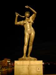 | 18:16 | 幣舞橋にある「四季の像」(春:左上、夏:右上、秋:左下、冬:右下)をデジカメ撮影する。ふるさと切手「幣舞橋」(雪世界II)に登場の像は手前が「冬」の像で、奥が「春」の像です。冬の像は札幌出身の彫刻家、本郷新(ほんごう・しん)の作品。フィッシャーマンズワーフ局の風景印に描かれている幣舞橋の像も「冬」の像です。実は、フィッシャーマンズワーフ局は平成元年(1989年)7月14日開局で、開局と同時に風景印使用開始。これは札幌駅パセオ局も同日開局・風景印使用開始。そして札幌駅パセオ局の風景印に登場の札幌駅前「牧歌の像」も本郷新の作品です。2局の風景印原画者は同じ人が担当しているので、きっと描いた像が同じ作者なのは知っていて描いたんじゃないでしょうか?(推測ですが) 「春」の像の制作者、船越保武氏も札幌・大通公園(西3丁目)にある「泉の像」の制作者でもあり、札幌大通局風景印に登場しています。ほんとに切手や風景印を調べていくと、どんどんいろんなことがわかってきますよね(^^)。 |