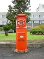 | 15:33 | 芽室駅から100mほど東に行ったところにある青山商店前の丸形ポストを撮影する。このあと本当なら芽室局に行って、風景印を記念押印したかったのですが、芽室の滞在時間がわずか15分で芽室駅と芽室局は400mほど離れているため、今回は芽室局行きを断念する。 |