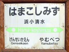 | 10:14 | 清JR浜小清水駅の駅名標と駅舎…と、言っても、実際は道の駅「はなやか(葉菜野花)小清水」の建物ですが…を撮影する。そして、道の駅スタンプを押す。 |